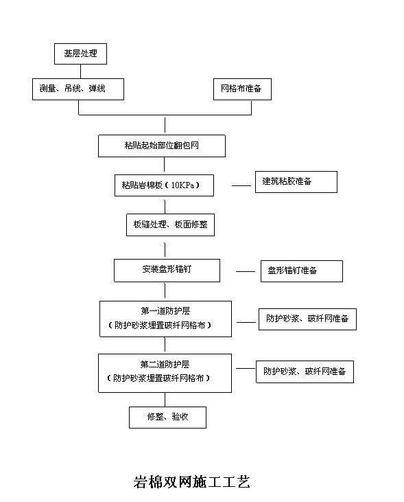 在墻體轉角兩個(gè)互相垂直的墻面上及其它必要處掛垂直基準鋼絲線(xiàn),然后在每貼一排巖棉板時(shí)拉橫線(xiàn),以控制巖棉板面的平整度及陽(yáng)角的垂直度。