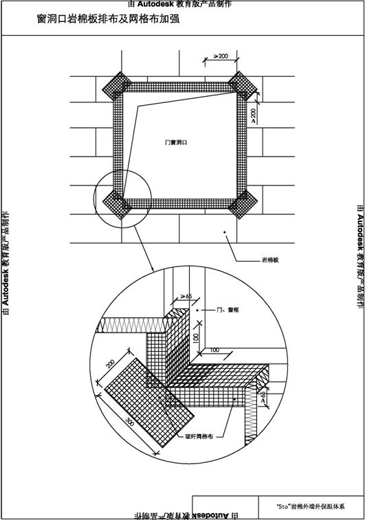 圖12 門(mén)窗開(kāi)口處的斜向增強處理 圖13玻纖網(wǎng)格布之間應搭接10cm